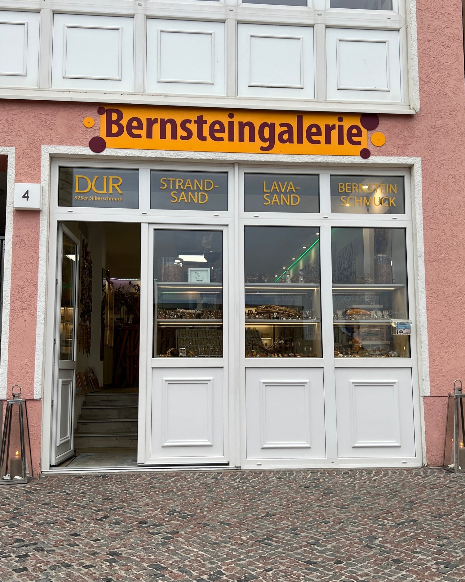 In unserer Bernsteingalerie erwartet Sie eine große Auswahl an Schmuck und Souvenirs mit Bernstein sowie die beliebte DUR-Strandsand-Kollektion. Bei mehreren tausend Artikeln im Sortiment findet sich garantiert für jeden Geldbeutel die perfekte Urlaubserinnerung.