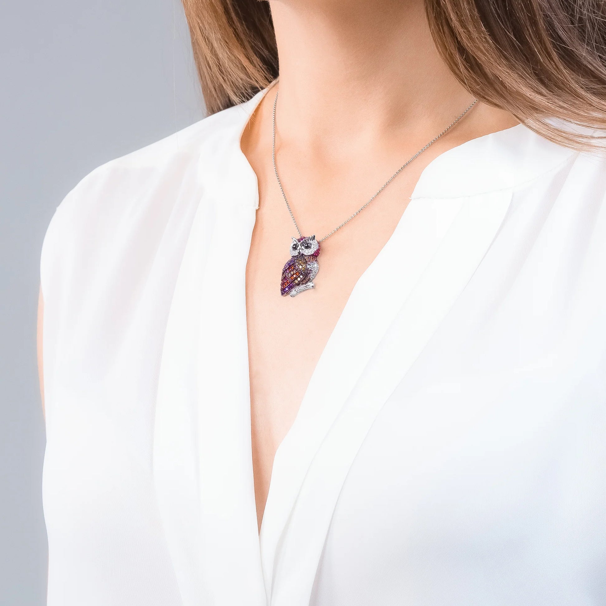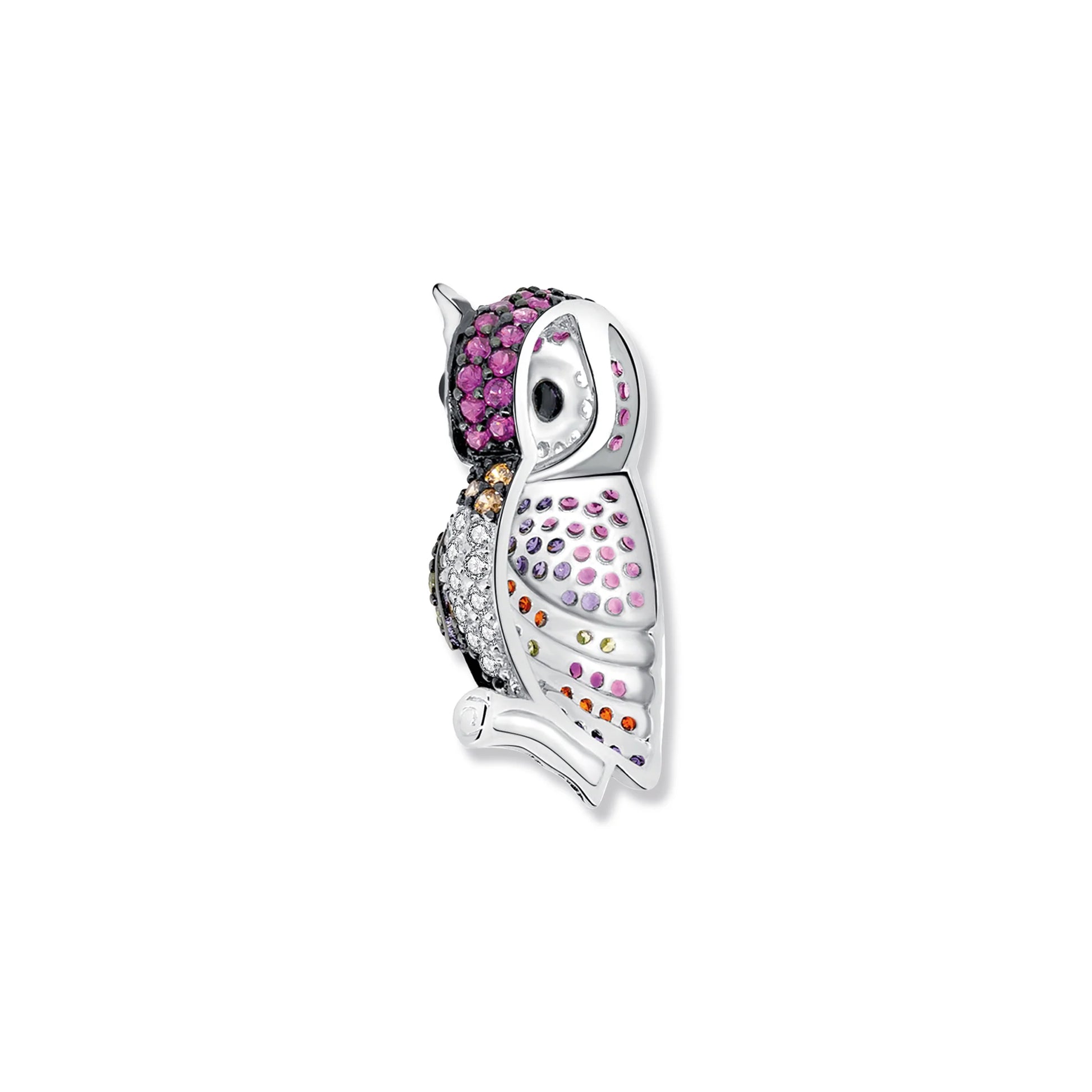 Der Antje Eulen Anhänger aus 925 Sterling Silber strahlt Charme und Weisheit aus. Mit funkelnden Zirkonia-Steinen in leuchtendem Lila und bunten Farben ist er ein elegantes Accessoire für jeden Anlass.
