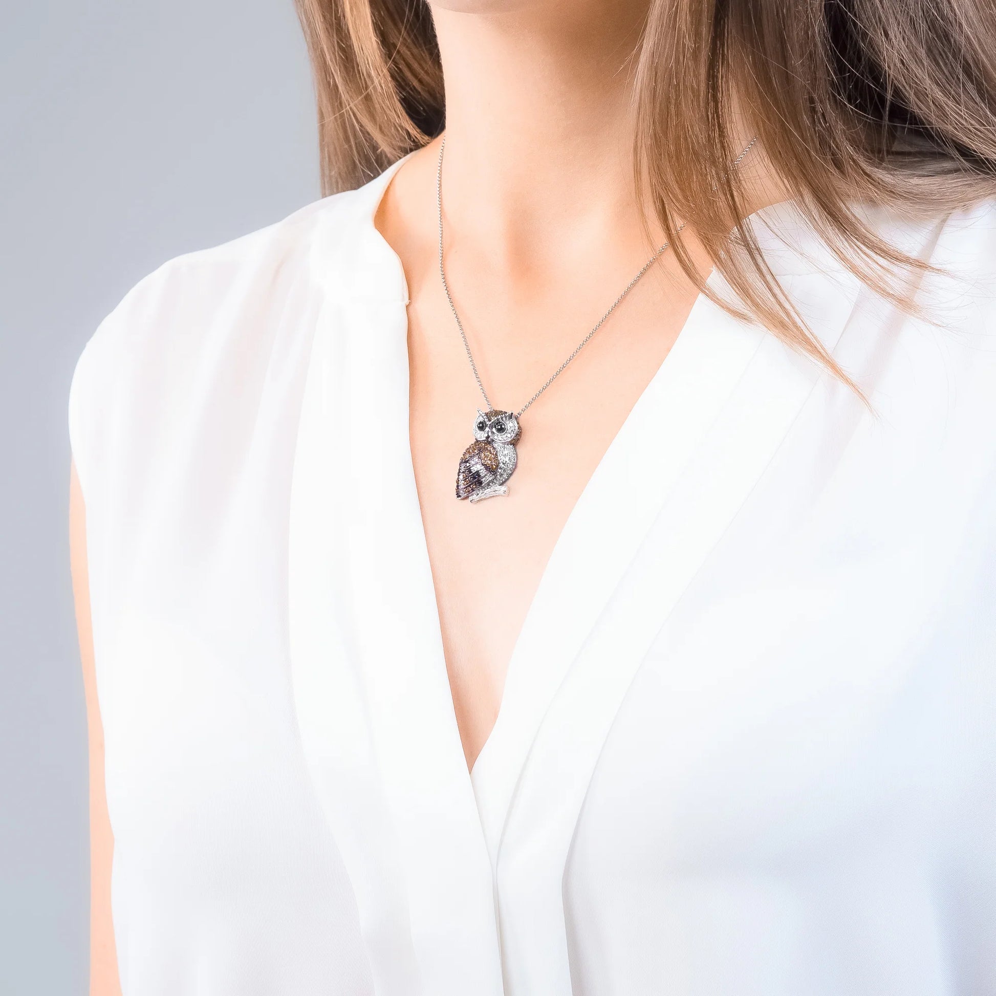 Der Garry Eulen Anhänger aus 925 Sterling Silber präsentiert eine charmante Eule in braunen und weißen Zirkonia-Steinen. Ein Kunstwerk, das Ihre Liebe zur Natur und zum exquisiten Schmuck unterstreicht.