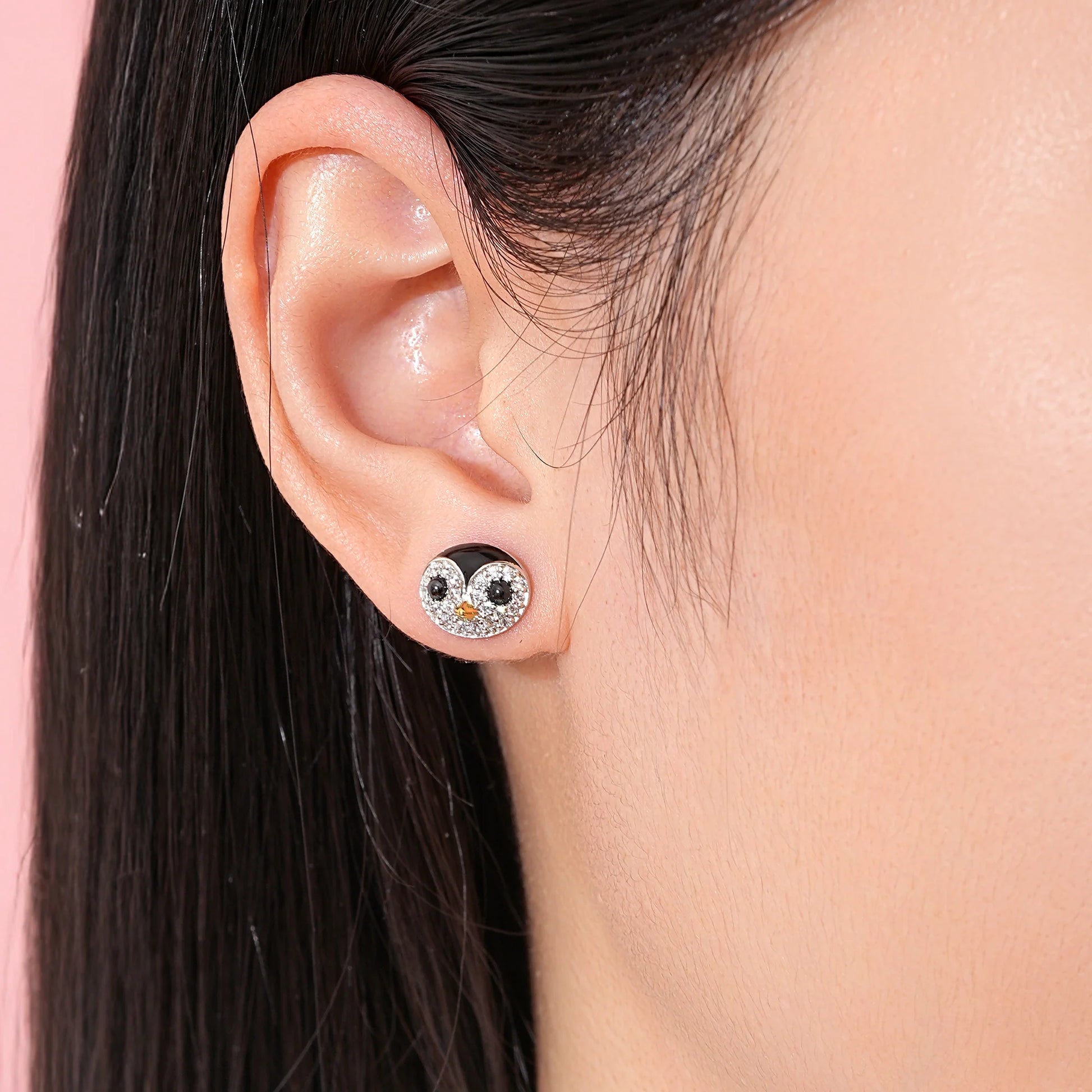 Kiki Pinguin Ohrstecker aus Sterling Silber mit schwarzer Emaille und weißen Zirkonia – verspielt, edel und das perfekte Match zum limitierten Anhänger.