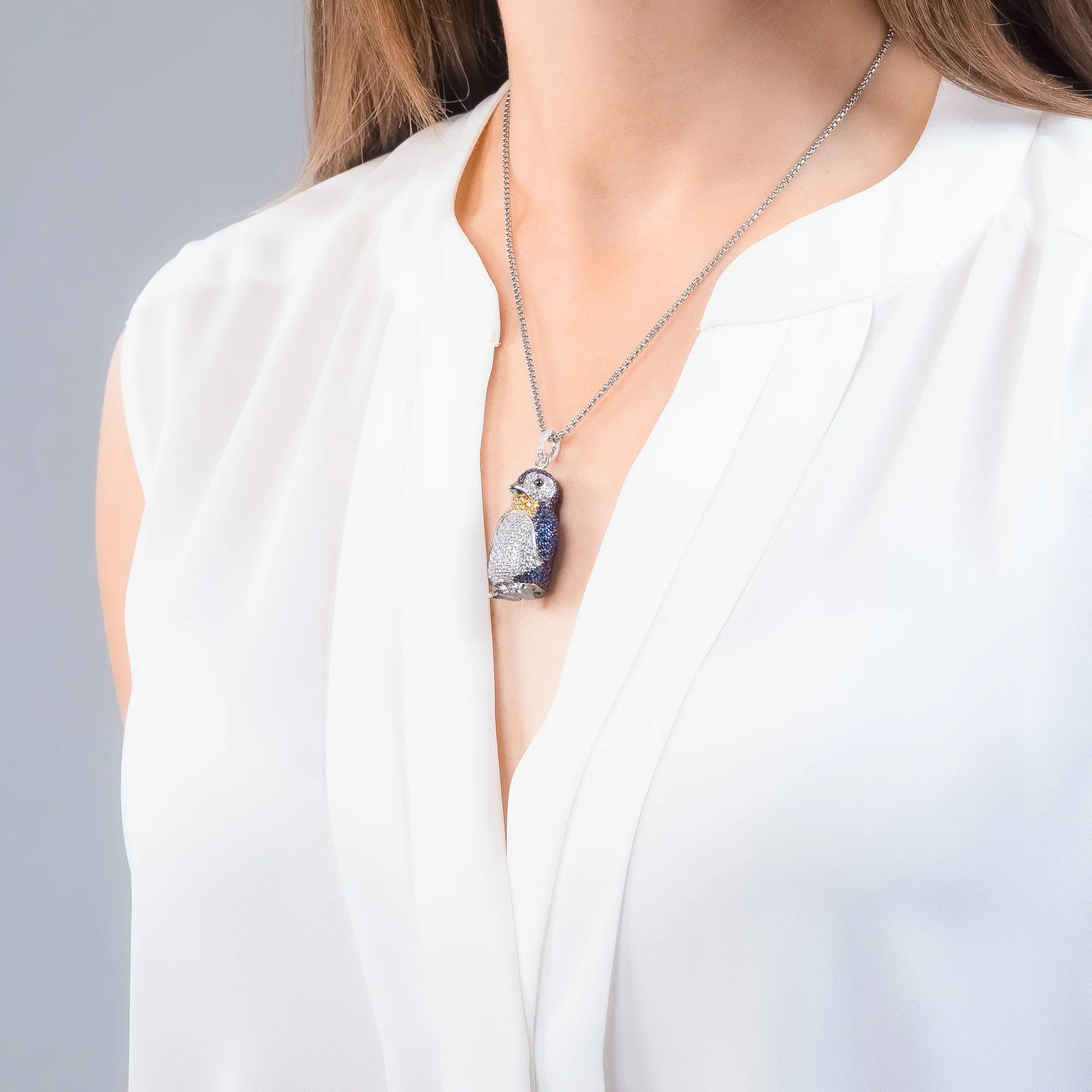 Der Fedi Pinguin Anhänger in 925 Sterling Silber ist eine zauberhafte Darstellung eines der bezauberndsten Bewohner der Polarregion. Mit sorgfältig gesetzten Zirkonia Steinen verkörpert dieser Anhänger die Grazie und Schönheit der Pinguine.